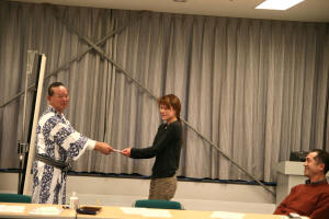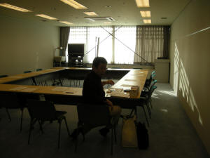 盛会となり、余韻覚めやらぬうち、集合部屋「105」へ移動。よーし盛り上がってきた=♪そうそう、でね、「105」って結構遠くて移動中の名(珍?)場面がありました。ちょこっと紹介。