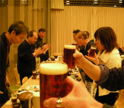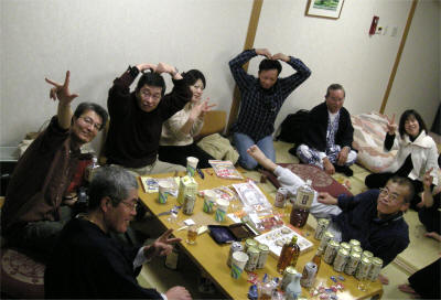 みんな思い思いのお酒を飲みながら、熱くJazzを語り、歌い?踊り?楽しく親睦を深めたのでありました。数々の名アンド珍アンド迷場面がカメラの中に記録されておりました。皆さんの記憶の中にも記録されているのかな。。若干1名は飛んじゃってるみたい・・・。怖〜い。 |