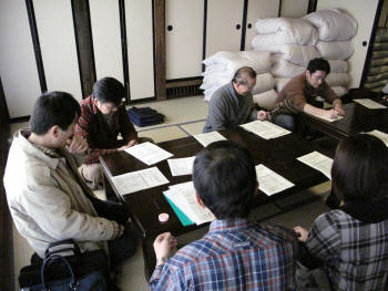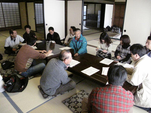 今年は離れの「川中島の家」。畳の部屋で和やかな総会の様子であります。 |