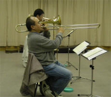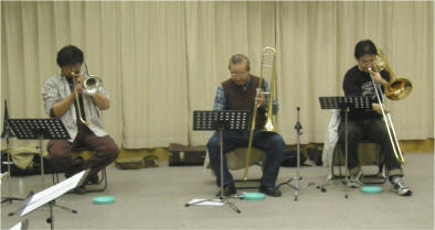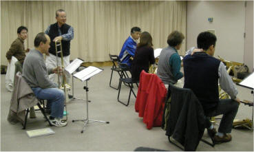 というわけで、本年締めくくりの練習をまたまた熱い面々が模索しております。おさらいしてみましょうかねぇ。はじめは「ホワイトクリスマス」(あれぇーなんかお経みたいだぁ。。。)って素直に感じたの自分だけ?で、「もっと色っぽくやろうよ〜」なんてコンマスさま。そしたら、そーなんです・結構またまたそれらしく聞こえたりして。?で、次、「TUNINGUP」今日はちょこっと通しに近くやってみました。