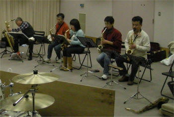 熱く(だったー?)Jazzを模索する面々=TNSメンバーinサンテラス練習室であります。本日は来週末に控えましたイベント主催者様が見学&打ち合わせでお見えになりました。主催者さまいわく「ライト兄弟が生まれた3年後に生まれた方」も参加される(え"っ聞き違え?)という今回の音楽会。当バンドも初めての体験。曲選び、演出?