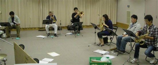 Asax2人、Btb1人、ラッパ2人、リズム0人の寂しい5人・・それでもコンマスがいてくれましたので、何とか練習にはなりました。